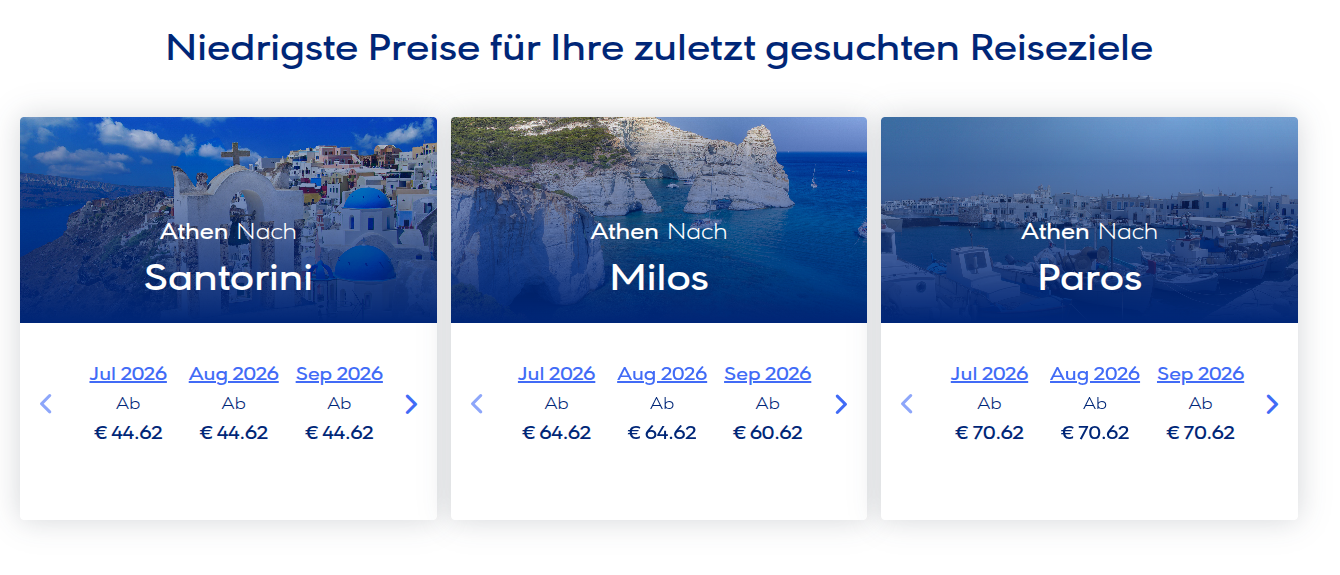 Auf der offiziellen Buchungsplattform kannst Du Deine Abflugsstadt wählen und siehst sofort verfügbare Ziele und Startpreise – oft bereits ab günstigen €50 + auf ausgewählten Routen.